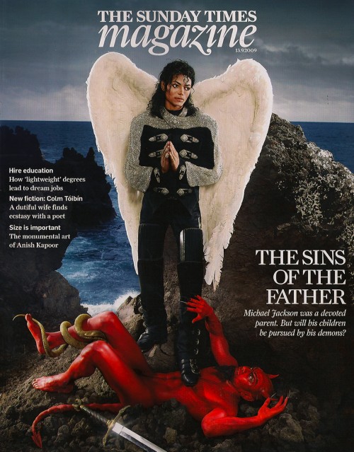 The famous celebrity photographer has always wanted to capture Michael, but it never happened, “Photographers weren’t nice to him. He got scared.” LaChapelle used a young Jackson lookalike for this portrait, which was shot in Hawaii. The devil in red was played by a friend of LaChapelle, a performer in Cirque du Soliel.