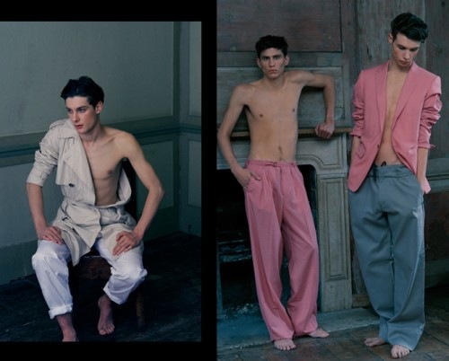 The recent Spring-Summer 2009 issue of AnOther Man magazine featured this mesmerizingly beautiful editorial with photography by Mel Bles and fashion direction by Stevie Westgarth. Entitled ‘Poised in readiness until all civilization collapses in spectacular fashion,’ the editorial features models Robbie Wadge, Jonas Kesseler, and James Hampson.
