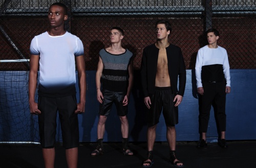 The new issue #21 of Fashion156 uses Sports as its theme, with photography by Fabrice Lachant and styling by Guy Hipwell. The featured models are Marcus, Jamel , Sam, and Jack O, shot on location at Downside Fisher Youth Club, London. More after the jump.
