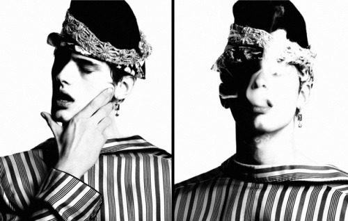 Sean O’Pry plays ‘Othello’ for photographer Minoru Kaburagi in the recent Spring/Summer 2009 issue of Bon. Othello seems to have moved from Venice to NYC, and has picked quite the moves and fashion sense with the help of Tom Van Dorpe. More after the jump.