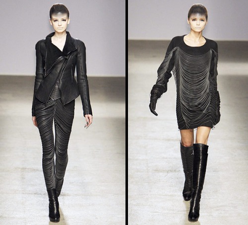 With his gender bending approach to style, I figured it’s best to present a preview of both the Gareth Pugh menswear and womenswear Fall/Winter 2010-2011 collections which were just showcased in Paris. I must say that it’s much more demure and ready to wear than his usual creations, not that it’s a bad thing at all. More after the jump.