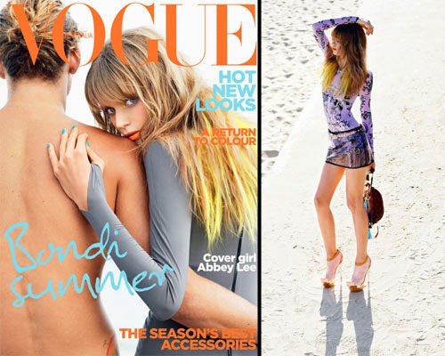 As I was passing by the magazine stand earlier today, the March 2010 issue of Vogue Australia with its insanely romantic and sexy cover called out to me ‘pick me, pick me.’ So I did. I was greeted in the middle of the magazine with the main editorial ‘The Life Aquatic,’ which evoked memories of Bruce Weber’s Pet Shop Boys music video, Se a vida é. In addition to the gorgeous Abbey Lee Kershaw, and Tyler Atkins, photographer Max Doyle captures joyful youth at Australia’s famous Bondi beach with styling by Naomi Smith. More after the jump.