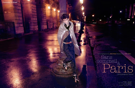 Benoit Taupin, a new French model with a striking face, stars in ‘Sleepless in Paris’ by Bell Soto and John Tan for the second volume of Visual Tales. Click to enlarge and continue for more after the jump.