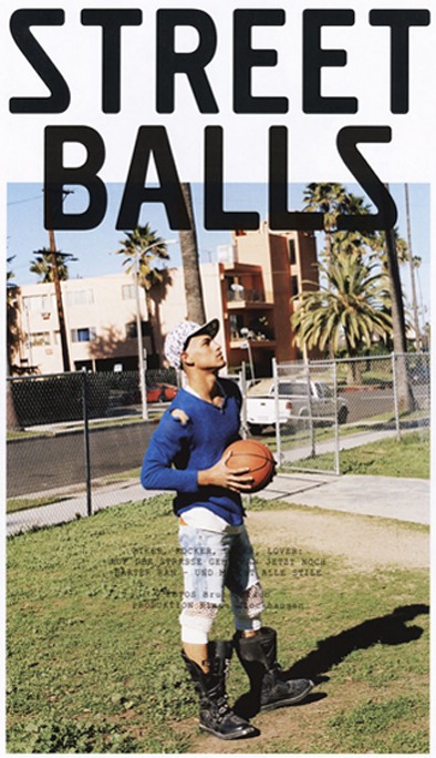 Young model Jonathan Marquez [click models] stars in this cheeky editorial ‘Street Balls’ photographed by Bruno Staub and styled by Klaus Stockhausen, from the new Spring/Summer 2010 issue of German GQ Style. More after the jump.