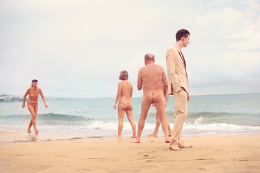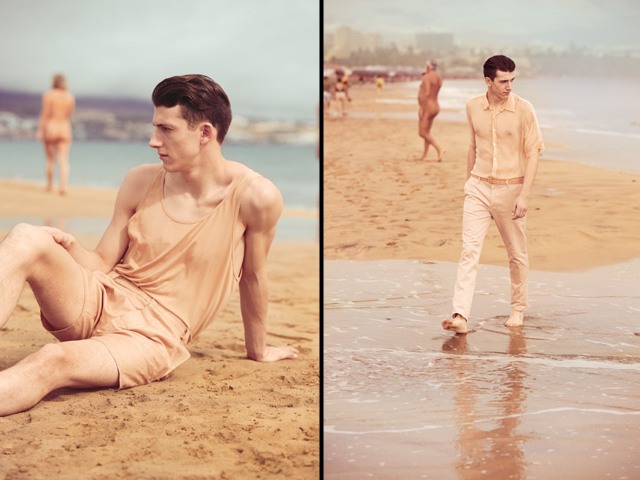 Model James Wells takes a walk in shades of beige among the ‘free-spirited’ folks at the beach, with photography by Benjamin Alexander Huseby and styling by Jodie Barnes. Click to enlarge and continue for more (NSFW) after the jump.