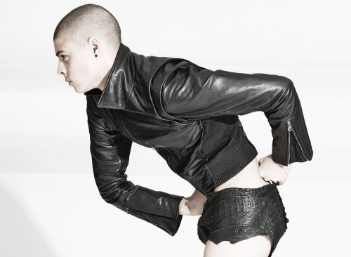 “I derive my influences through feelings made from visual "shocks" to produce an emotion, that in turn, influence my craft,” Asher Levine explained to Homotography. “I find images that produce wildly variant emotions - gruesome, awe, joy. A few of these photographs from my fall collection include a 400x magnification of melanoma in an eye, a goat placenta, Papua New Guinea relics, and my favorite, scientists dissecting an adolescent whale in their laboratory.”