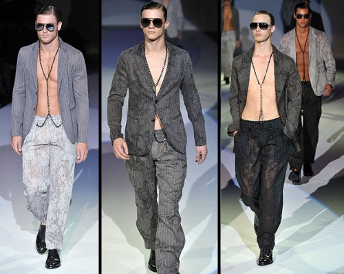 A quite unexpected Emporio Armani Spring/Summer 2011 Menswear collection, presented at Milan Fashion Week. Catch the full show after the jump.