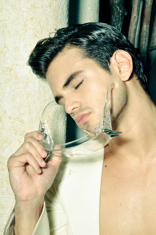 This shoot is part of a series THE MEN OF GAGA, A TRIBUTE FROM UKMCBO, with each set inspired by one of Lady Gaga’s songs. Hair and make-up by Ilde Goncalves and accessory by Joey Rolon.