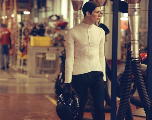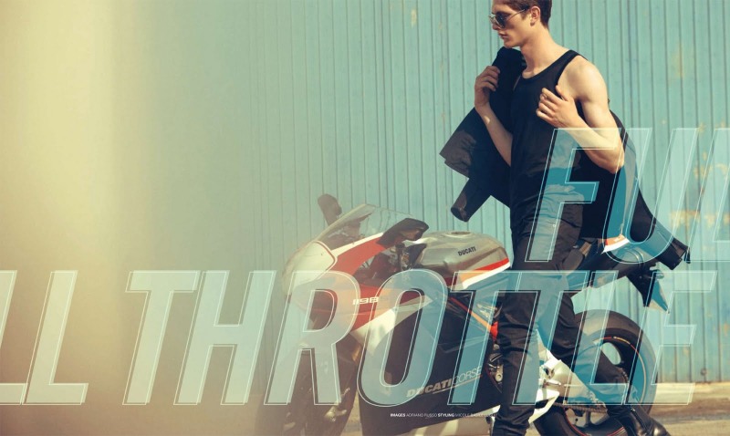 Leopold Pesch stars in the Ducati-centric ‘Full Throttle’ in the new issue of Surface magazine. The editorial was photographed by Adriano Russo and styled by Micole Basile Lugli with grooming by Luca Lazzaro.