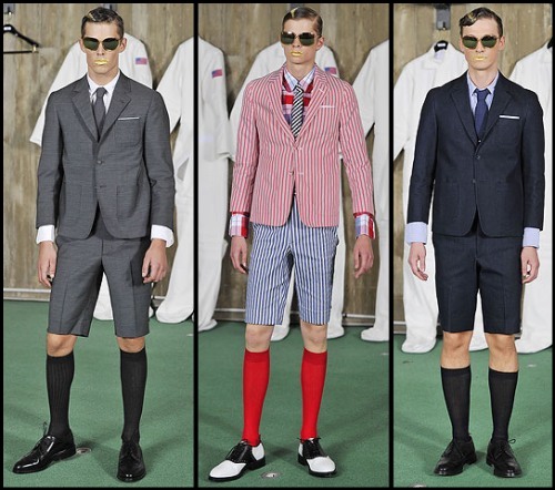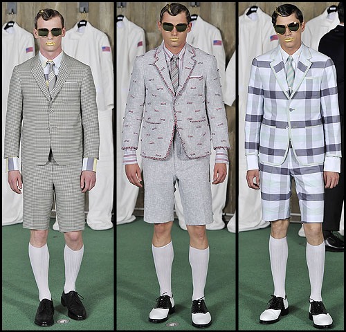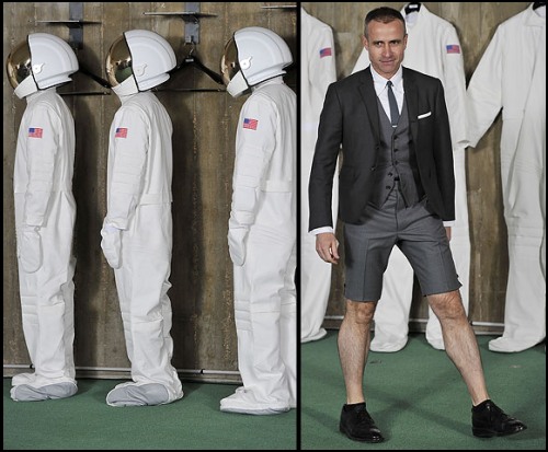 Thom Browne presented his Spring/Summer 2011 menswear collection in Paris with the help of spacemen with neon yellow lips.