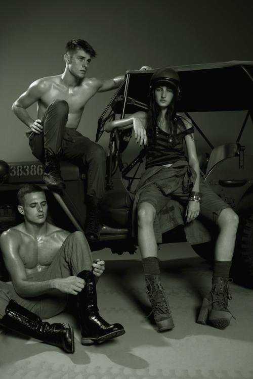 The June 2010 issue of Criativa features this editorial "Zona Militar" (Military Zone) by Fábio Bartelt with models Alex Schneider, Barbara Isquierdo and Jonathan Dalcin.