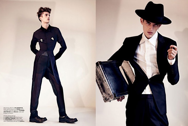 Swedish model Gabriel Grönvik made quite the memorable editorial debut in the April/May 2010 issue of Wonderland magazine. Chop My Blood is photographed by Benny Horne with unorthodox styling by Way Perry, hair by Chi Wong and make-up by Adam de Cruz. Click to enlarge and continue for more after the jump.