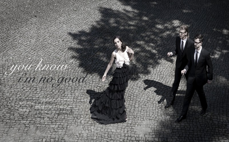 It’s a love triangle story in the editorial ‘You Know I’m No Good’ by Jakub Pleśniarski with models Kuba Trzaskowski, Sara Faraj [both at New Age] and Robert Ryzek. Styling by Marta Roman and makeup by Krzysztof Nadziejewiec.