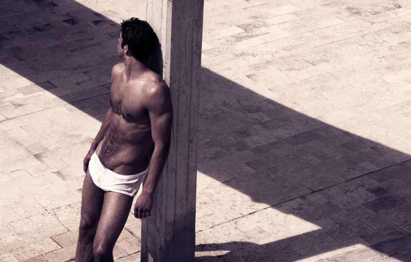 After the sexy courier editorial we bring you a look at Aqua Viva from the September 2010 issue of Attitude magazine. The underwear editorial was shot by Tomas Falmer on location in the grounds of the Abbadetta Hotel with styling by Frank Strachan featuring Ivan.