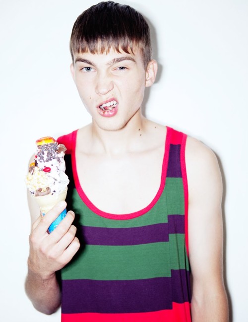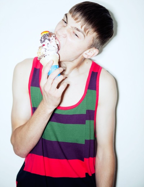 Pavel Pisotski and Christopher Bittner cool off the summer heat with ice cream in the new third issue of Visual Tales magazine. The delicious editorial Double Scooping is photographed by Shannon Sinclair with styling by John Tan, grooming by Britney Williams and treats by Last Licks. Note: this post includes both official images and extra outtakes.