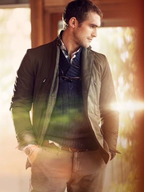 While the main collection ads featuring David Gandy are studio portraits, Massimo Dutti get Will Chalker and Alex Loomans outside for their Massimo Dutti Sport Fall/Winter 2010-11 ad campaign.