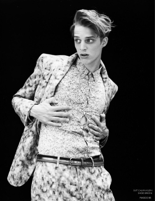 Set to a stark black background, model Benoni Loos shines in the editorial Crumpled/Scoundrel by Aline & Jacqueline Tappia, published in the September/ October 2010 issue of Fiasco magazine. The fantastic editorial is styled by Peter Cardona with hair by Simone Prusso and make-up by Seiko Nishigori.