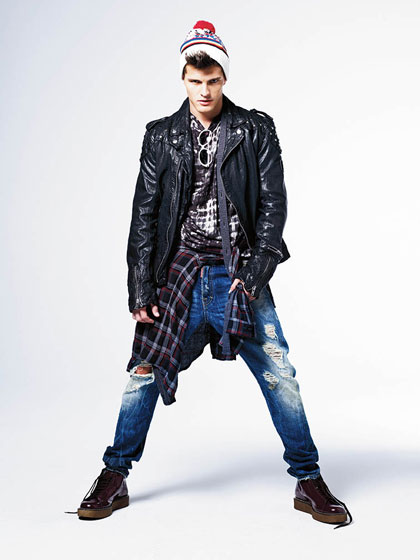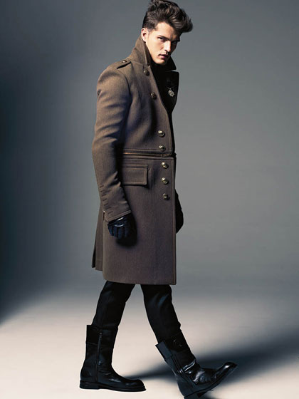 Out magazine presents 10 trends for this fall season in its September 2010 issue with the editorial Typecast. Brazilian model Diego Miguel is photographed by Cameron Krone and styled by Brent Austin Coover.
