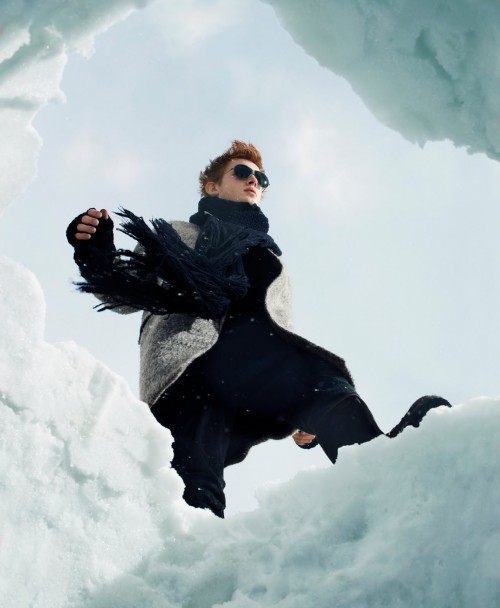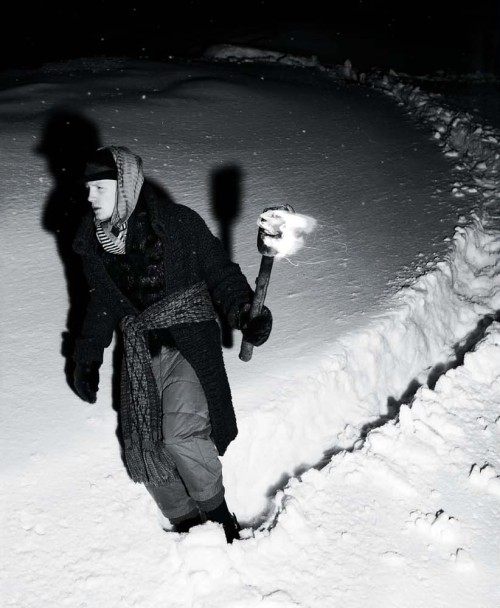 Danish beauty Lasse Pedersen braces the cold in 'Cold Play' from the Fall 2010 issue of T magazine. The snowy editorial is photographed by Jacob Sutton and styled by Bruce Pask with grooming by James Pecis and set design by Gary Card.