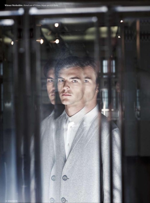 Wiener model Patrick Kafka is photographed by Mark Glassner for Die Presse magazine with styling by Barbara Zach and grooming by Thomas Orsolis. The editorial is titled, Wiener Komposition.