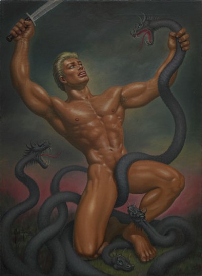 Taschen reintroduces the story and homoerotic work of iconic physique painter George Quaintance (1902–1957) with their new title, The Art Of George Quaintance [ US | UK ]. Born and raised on a farm in rural Virginia, Quaintance was way ahead of his time, forging the way for the acceptance of homotography in popular culture. Taschen playfully explains, "Had he been born a few decades later, we might know him today as a multi-tasking celebrity stylist, as a coach on Dancing with the Stars, or perhaps as the fine artist he aspired to be."