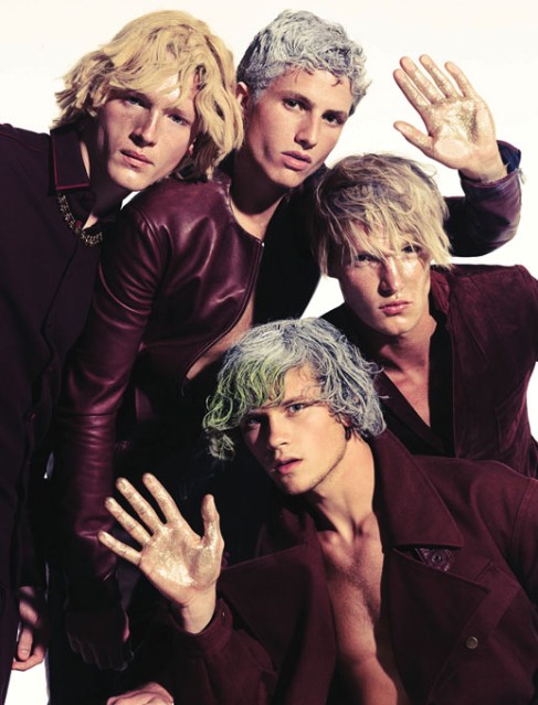 Hair stylist Kozmo transforms models Bo Ackerson, Grayson Gettys, Nils Lawton, Lasse Pedersen, Joshua Delos and Samuel Farrier in the new Blonde issue of Guapo magazine with photography by Joshua Jordan and styling by Joseph Episcopo.