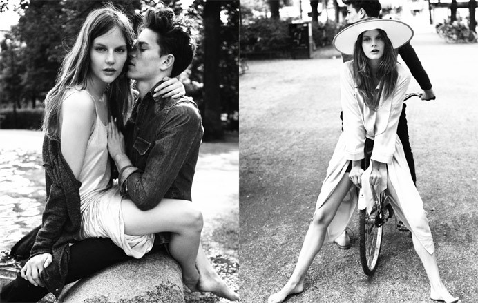 British model Jeremy Young continues to showcase his sexier side with the new SS11 issue of Stockholm S/S/A/W magazine. The intimate editorial Kärlek (Love) with his real-life girlfriend Sara Blomqvist is photographed by Andreas Öhlund. (Warning: NSFW after the jump)