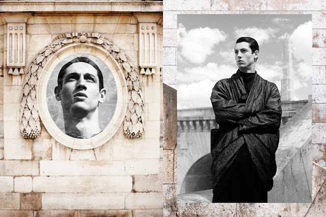 Nicolas Ripoll stars in an amazing Damir Doma special in Blend magazine, photographed by Barrie Hullegie and styled by Thomas Vermeer. The name of the editorial is Tempus Omnia Revelat, which is a Latin phrase that means Time reveals all things.