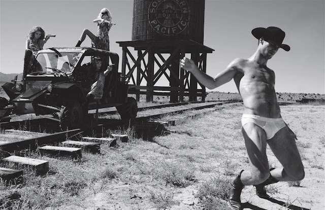 Terry Richardson pays tribute to 60s sexploitation cult film "Faster, Pussycat! Kill! Kill!" in the new Dec/Jan 10.11 issue of Vogue Paris. The editorial ‘Pussy West’ features Danny Schwarz, Joost Van Der Hulst, Abbey Lee Kershaw, Eniko Mihalik and Crystal Renn, styled by Julia Von Boehm. Note: NSFW after the jump.