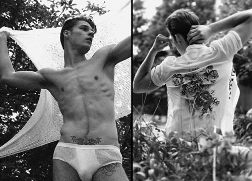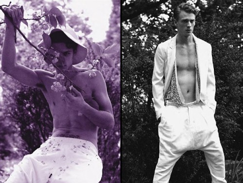 Tristan Knights and Mikus Lasmanis star in this wonderful floral editorial photographed by Steeve Beckouet and styled by Francesco Cominelli for 5.