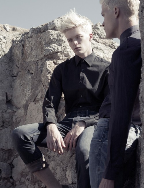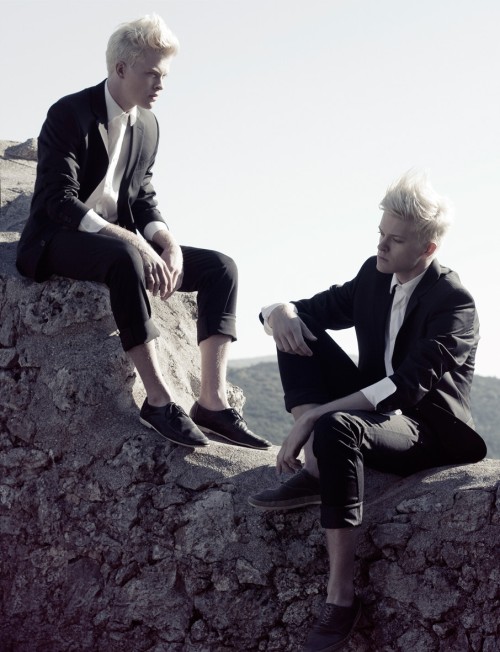 Multi-talented model Philipp Jelenska styled and photographed Wiener twin models Jochen Peroutka & Jörg Peroutka in the editorial Double Trouble, appearing in the new second issue of Gia magazine.