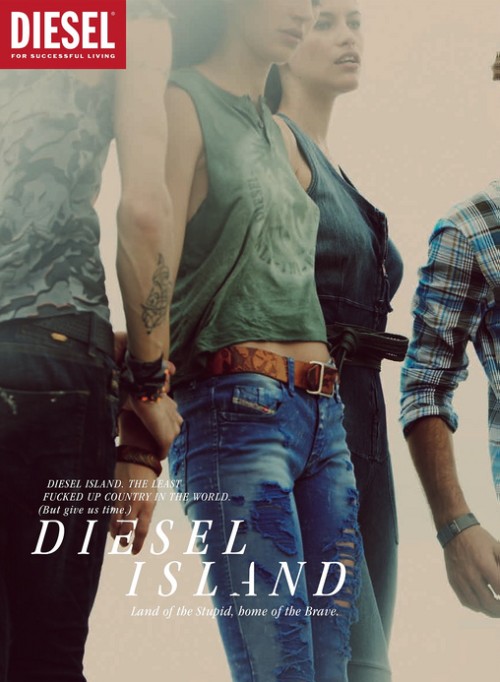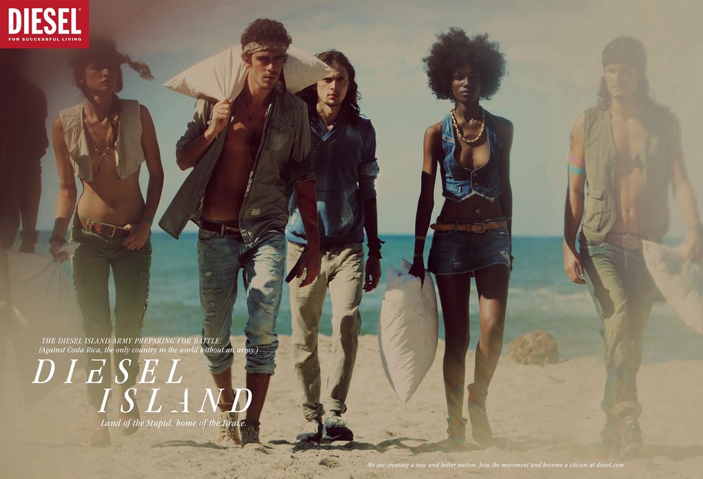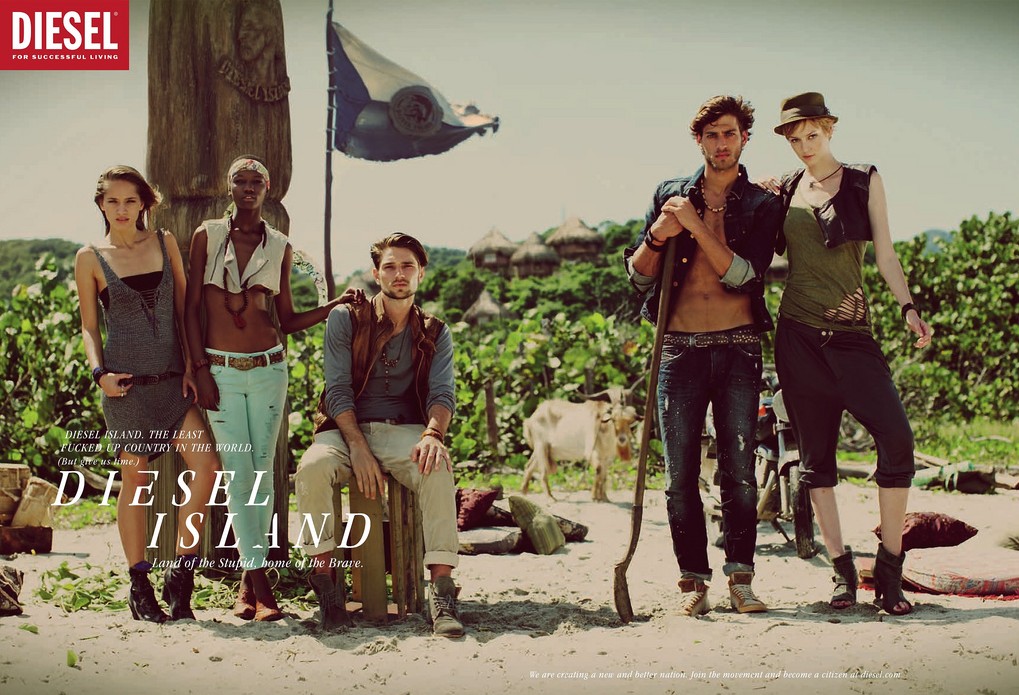 After calling upon people to Be Stupid in their recent campaigns, Diesel present the new Spring/Summer 2011 ad campaign, Diesel Island: Land of the Stupid, home of the Brave. The campaign is shot by Guy Aroch with models Texas Olsson, Randy Lebeau, Herieth Paul and Vincent Banic.