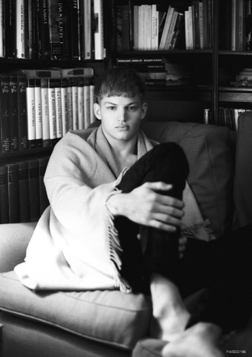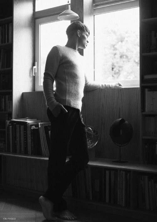 The new 'Black & White' issue of Fiasco magazine features models Sebastian Sauve, Jacob Coupe and Thomas Hoefnagels in the editorial The Faculty, photographed by Aline & Jacqueline Tappia and styled by Peter Cardona.
