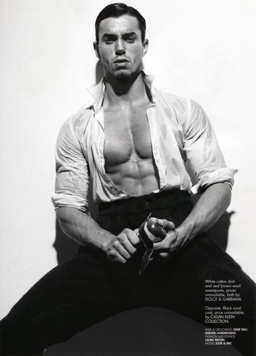 Brazilian model Igor Augusto is photographed by Chuando & Frey and styled by Brenda Tham in ‘Body Con’ for the November 2010 issue of Singaporean Style: Men.