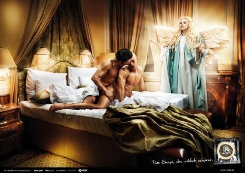 Easy tiger, it’s the latest safe sex campaign ‘AIDS Hilfe Wien’ in Austria. When you wear a condom, it’s like the angels watching over you and protecting you. ok? The ads were photographed by Oliver Gast for ad agency PKP with art direction by Daniela Reichmann and creative direction by Roman Sindelar & Erich Enzenberger.