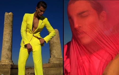 What makes this editorial even more striking is the contrast of the vibrant and bold fashion styling with the ancient ruins. Not to mention the extreme hotness of featured models Leandro Maeder and Mikus Lasmanis.