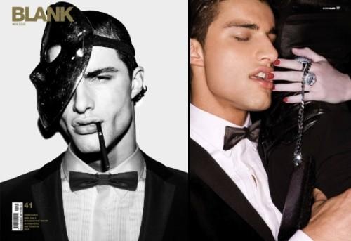 Leandro ‘The Lips’ Maeder stars in a cover shoot for issue no. 41 of Blank magazine. The Swiss model with the luscious pillow lips was captured by photography duo Steven Gomillion and Dennis Leupold in the editorial ‘Take Me Down Town.’ And just so you know, when Leandro takes you down town, it involves threesomes and rough play. So be prepared! The two female models are Irina Miccoli and Masha Rudenko.